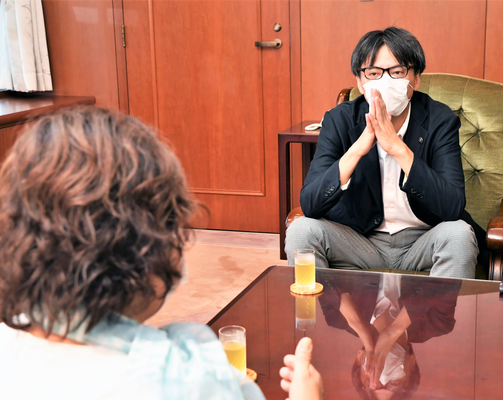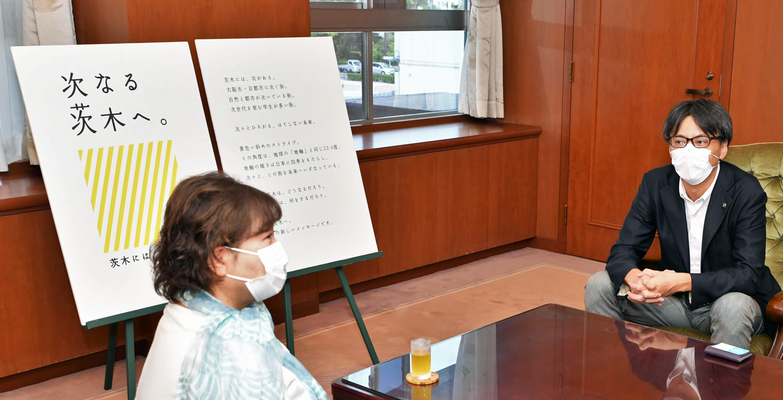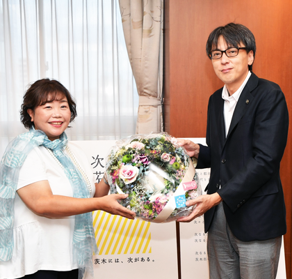 茨木市ホームページより 福岡洋一茨木市長と「株式会社こう」代表取締役 渡部貴久美